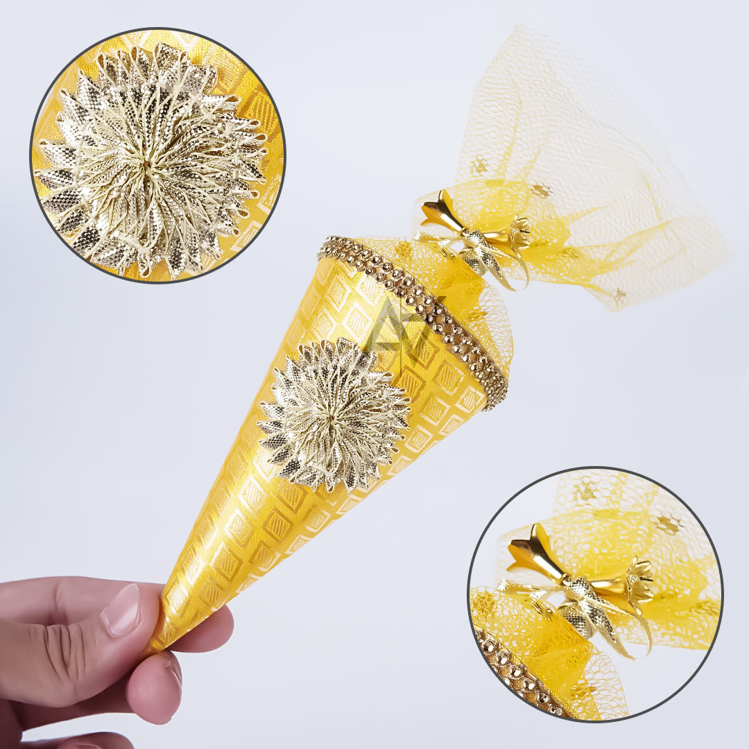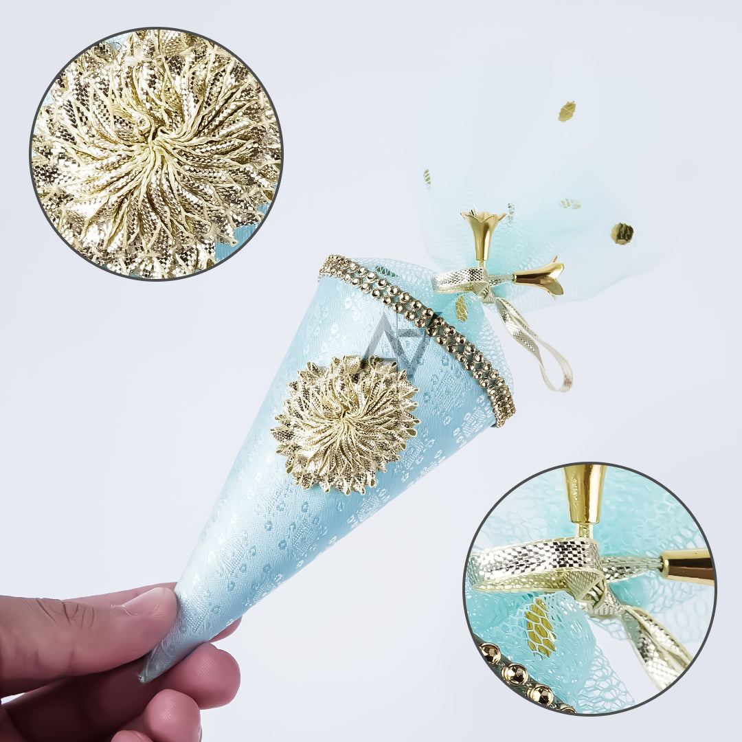 This pack includes Cone-shaped Nikkah pouches, designed for gifting sweets, dry fruits, or small tokens during Nikkah ceremonies and other special occasions. Made with lightweight fabric and available in a mix of vibrant colors, these pouches add a festive touch to your event setup.