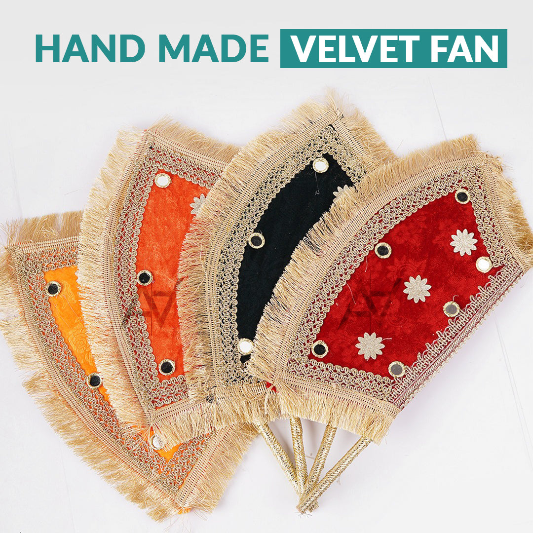 Hand Made Velvet Fan 1 pcs For Mendhi, Maiyu, party Decoration