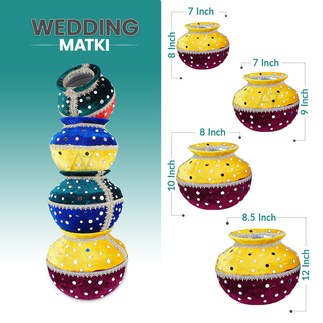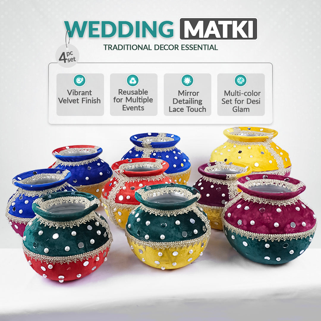 This Wedding Velvet Matki is a beautifully crafted decorative pot, ideal for enhancing the look of mehndi, mayoun, nikkah, and dholki events. Wrapped in soft velvet with traditional embellishments, it's perfect for decor setups, gifting, or stage accents.
