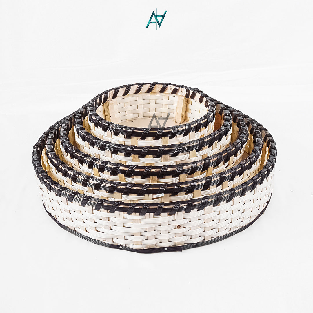 Natural Round Cane Trays, perfect for serving snacks, organizing accessories, or displaying décor items. This handwoven jute tray adds a rustic and eco-friendly touch to your home while keeping small essentials neatly arranged. Ideal for kitchen counters, coffee tables, and dining setups.