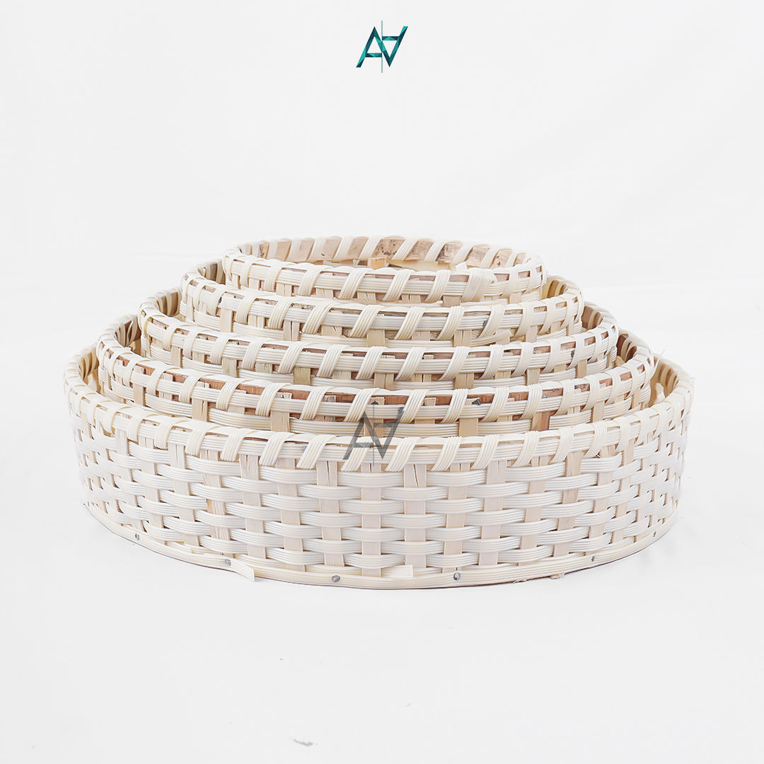 Natural Round Cane Trays, perfect for serving snacks, organizing accessories, or displaying decor items. This handwoven jute tray adds a rustic and eco-friendly touch to your home while keeping small essentials neatly arranged. Ideal for kitchen counters, coffee tables, and dining setups.